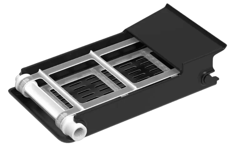 Torneira com dupla posição (Contínua ou Self Service) desenvolvida em forma de alavanca basculante para otimizar a usabilidade. Seu design exclusivo Zummo libera o suco por completo, evitando acúmulos na base e, portanto, maximizando a higiene e a pureza do suco.